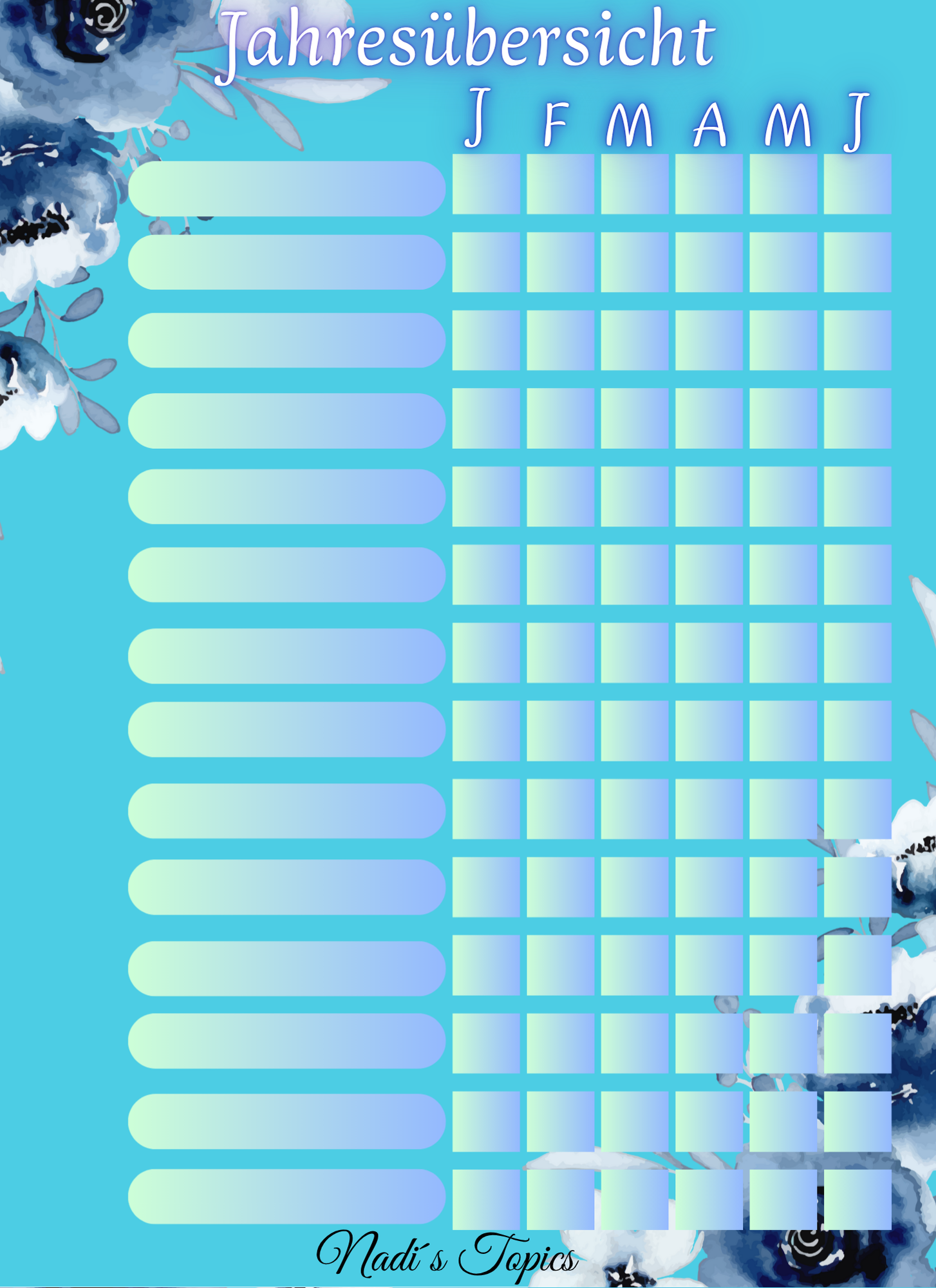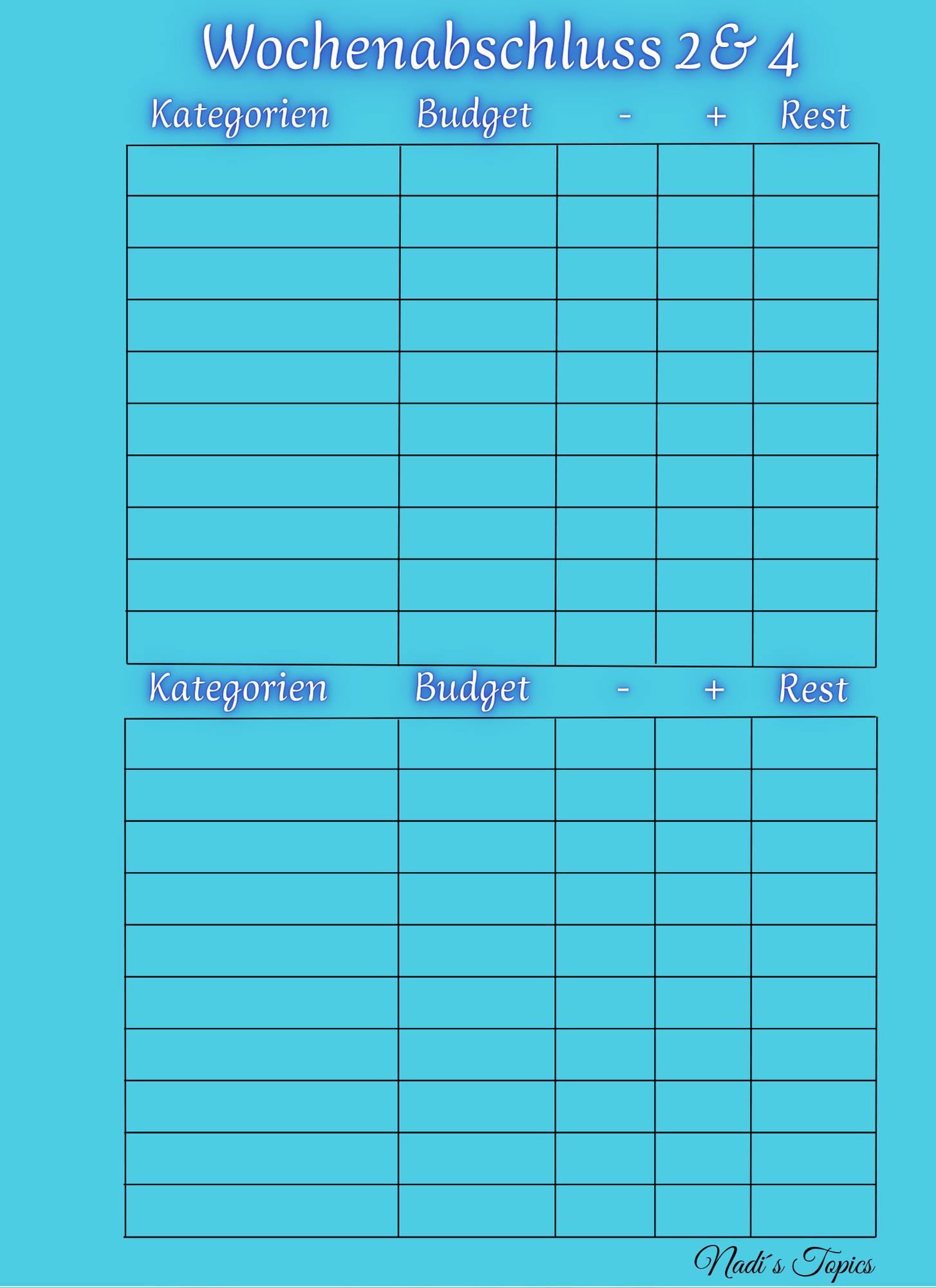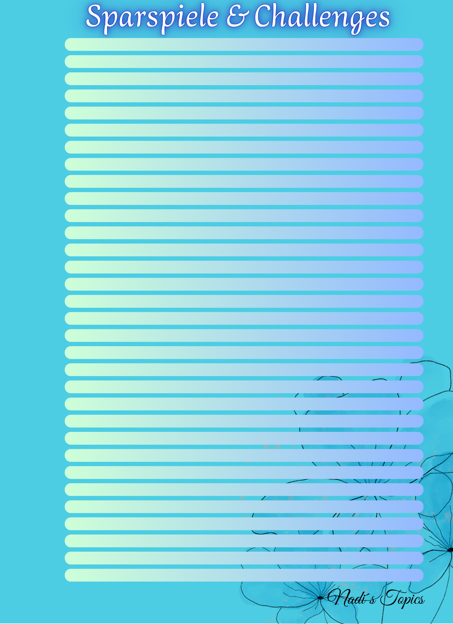 Die Seiten sind nicht datiert, sodass Sie immer wieder die Seiten neu drucken und an die jeweiligen Wochen, Monate anpassen können. 🤭
