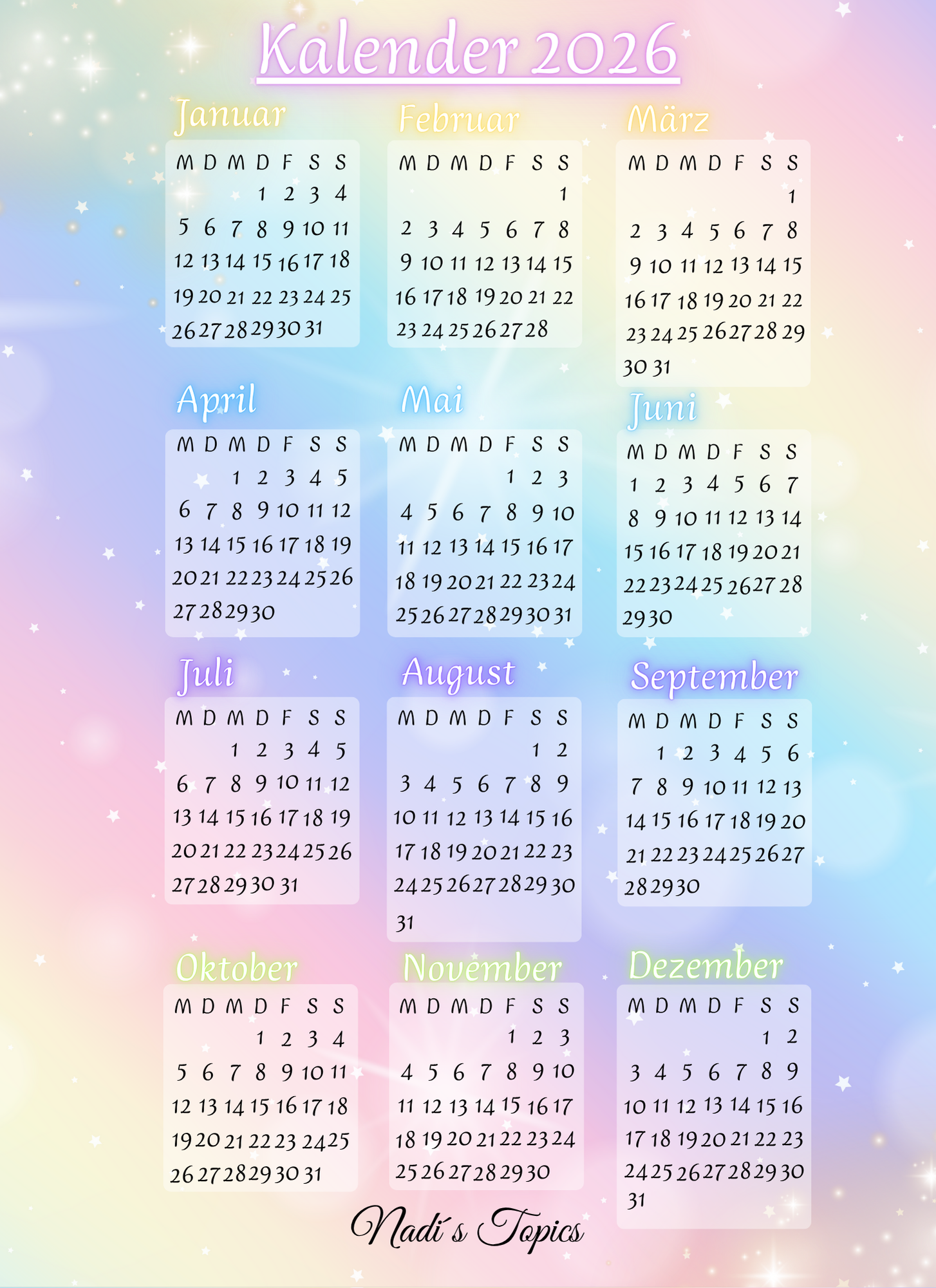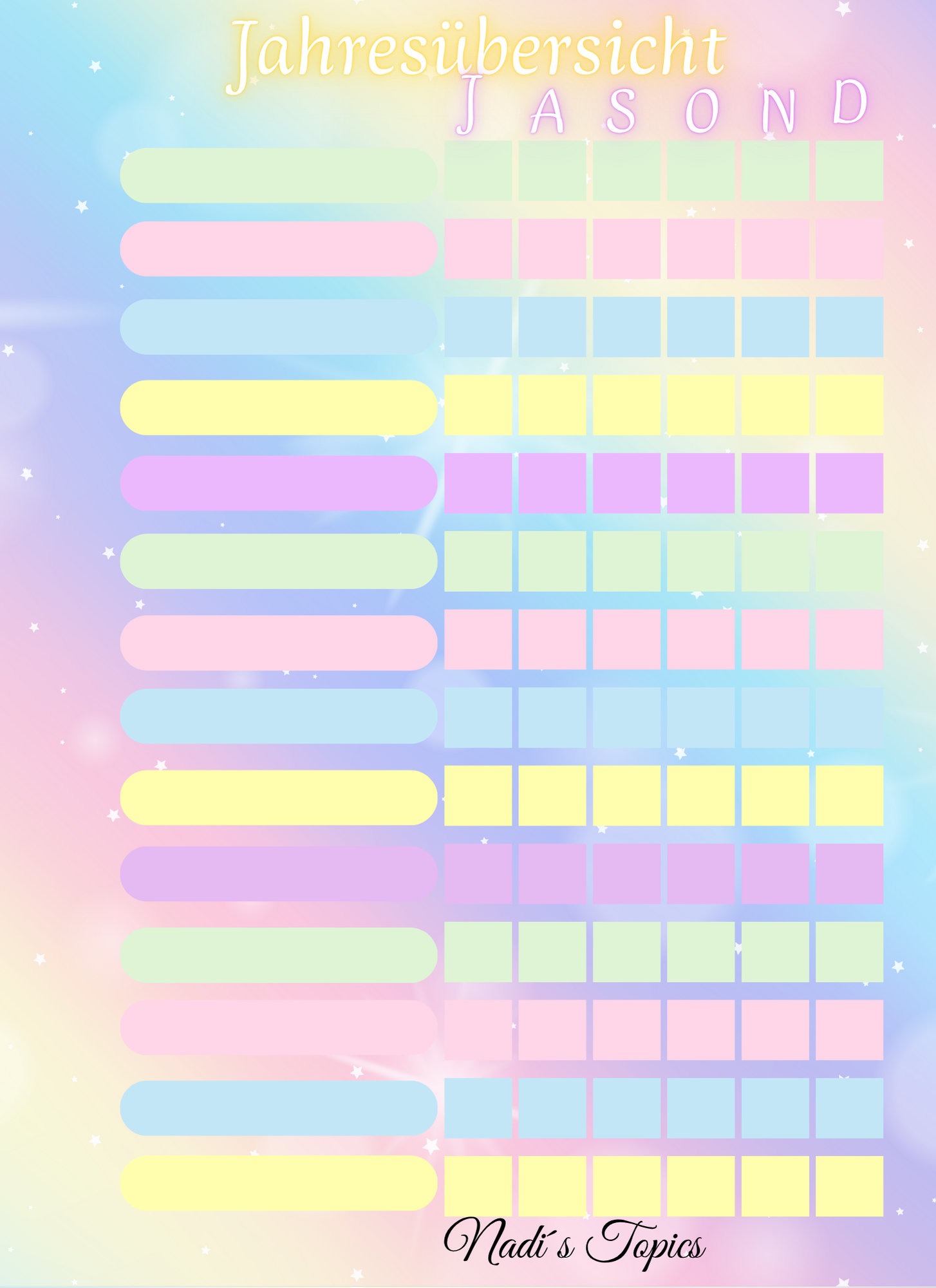 Die Seiten sind nicht datiert, sodass Sie immer wieder die Seiten neu drucken und an die jeweiligen Wochen, Monate anpassen können. 🤭