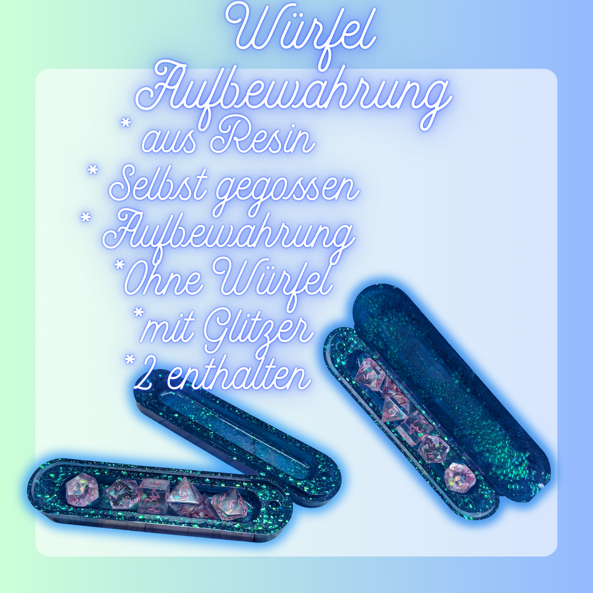 Entdecke hier die neue Aufbewahrung für deine Würfel oder als Geschenk. Die Würfelaufbewahrung wurde mit Resin/ Harz gegossen. Bei der Trocknungsphase könnten Blasen entstanden sein weshalb mini kleine Löscher zu finden sein können was weder das aussehen noch die Funktion beeinträchtigt.🥰